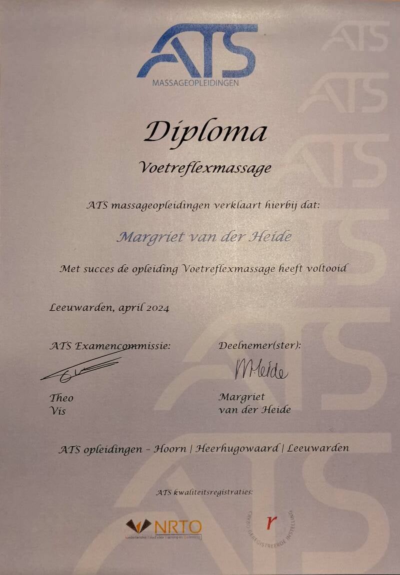 In april 2024 heb ik het examen voetreflexmassage gehaald.
